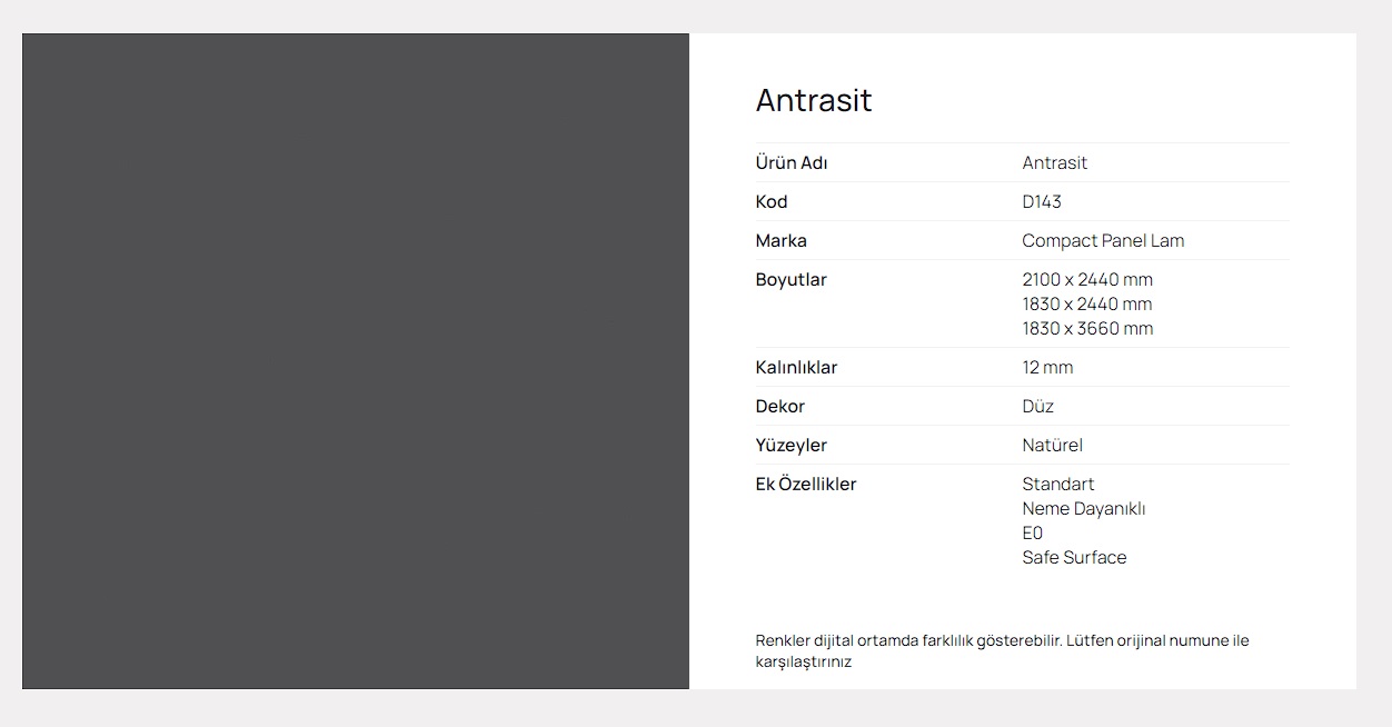 Kod:1001 Antrasit Gri plaka ölçüleri 122*244 olarak üretilmektedir. Yüksek yoğunluklu cdf panel.