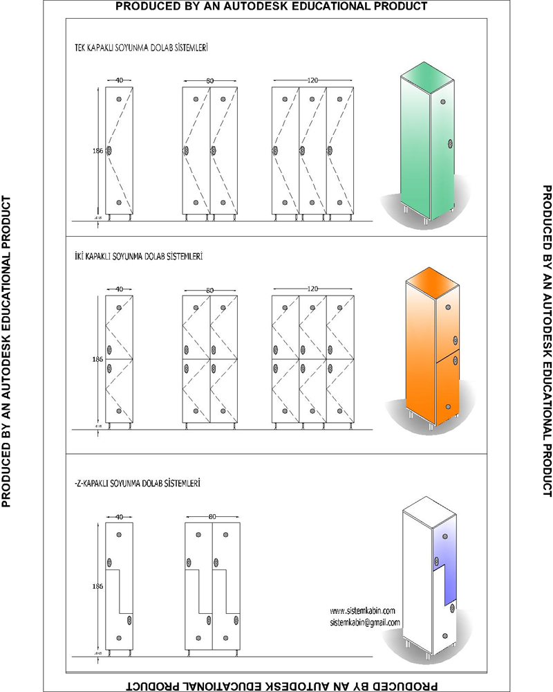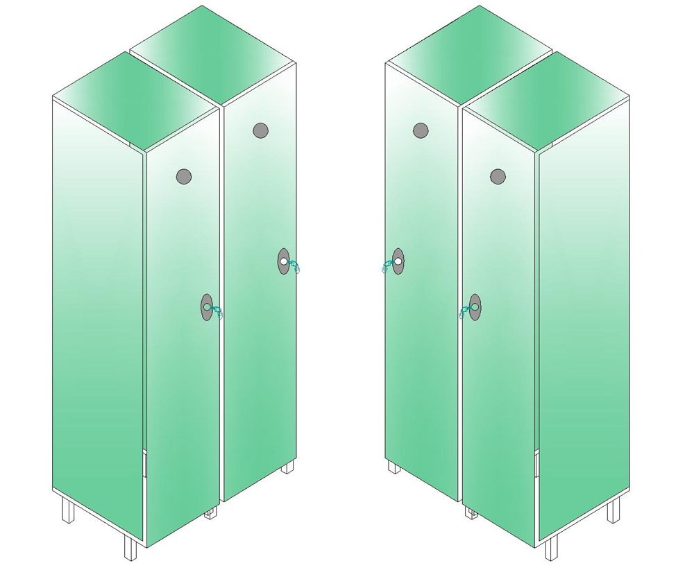 2 Kişilik 2 Kapaklı Soyunma Dolabı Gövde 18 MdfLam ve Kapaklar 12 mm Kompakt Laminat 80x40x180