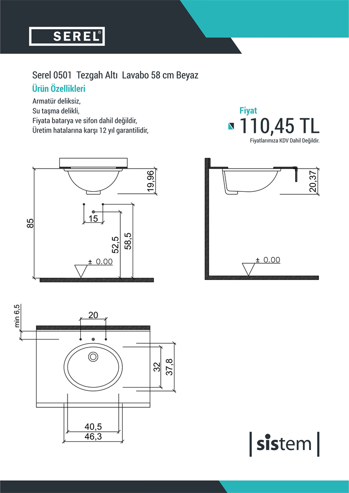 2 Lavabolu Kompak Hılton Tezgah