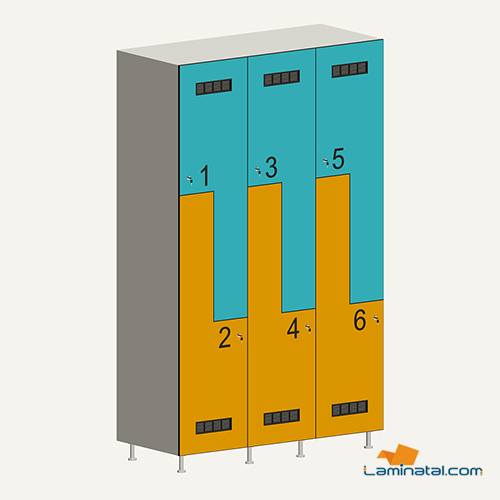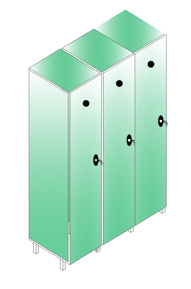 3 kapaklı Personel Soyunma Dolabı 12mm Compact Laminat Kapaklı 120*40*190