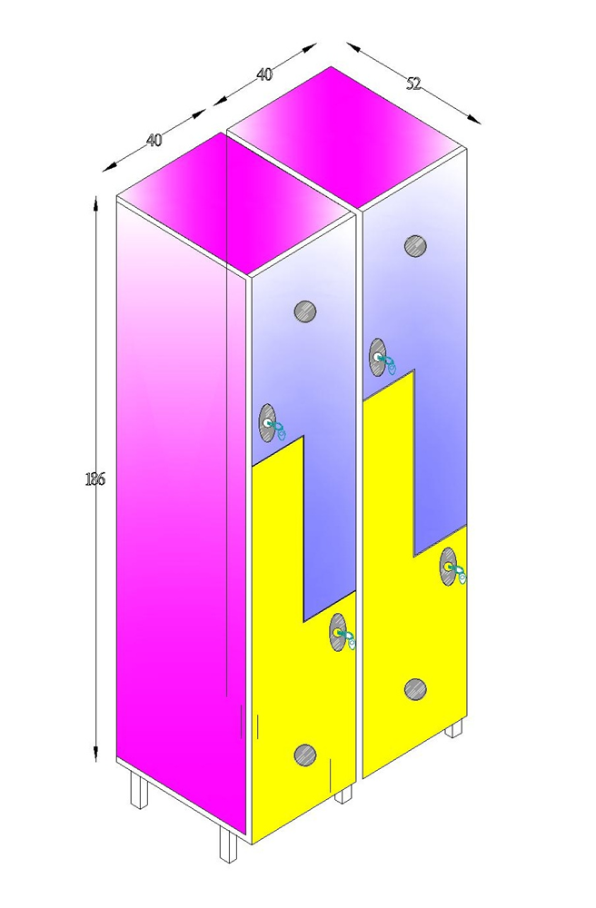 4 Kişilik Z Kapaklı Soyunma Dolabı Gövde 18 MdfLam ve Kapaklar 12 mm Kompakt Laminat 80x40x180