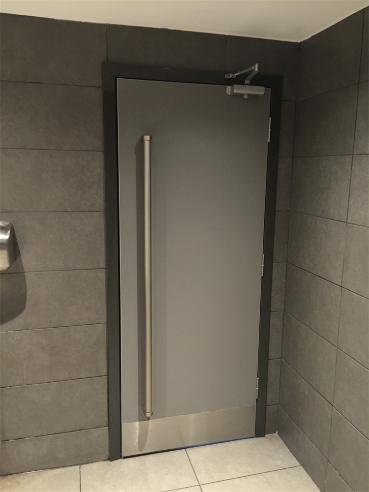 7- Kapılar, her bir kanat en az 3 adet A10 pozuna uygun menteşeler ile tespit edilecektir. A05 pozuna uygun silindirik gömme tip kapı kilidi, rozetli kapı kolları paslanmaz çelik (AISI 304-dolu gövde), satine ve stoper aksesuarları olacaktır.