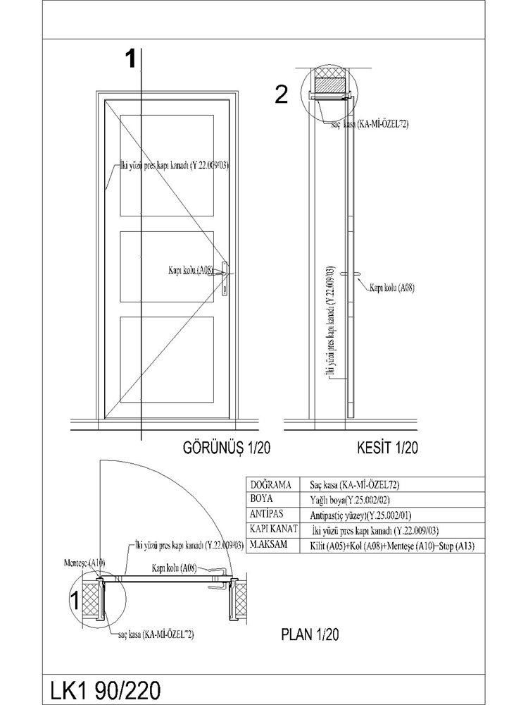 Kapılar proje üzerinden ve kapı listelerinden adet olarak hesaplanır. Kapı listelerinde ve detay çizimlerinde belirtilen tüm aksesuarlar fiyata dahildir.