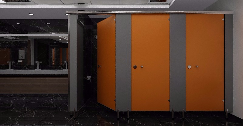 Proje, detay ve yerinde alınacak ölçülere uygun olarak 12 mm kalınlığında, gövdesi fenol formaldehit reçine emprenyeli ve siyah renkli, EN 438, DIN 16926 ve BS 3794 normlarında belirtilen tanımlamalara uygun yüksek basınçta elde edilmiş masif laminat olan, kapı panelleri 90 derece radiuslu, görünen kenar bitişleri yüksek devirli freze kullanılarak 6-10-12 derece radiuslarla yuvarlatılmış, 12 mm compact laminattan oluşan kapı ve bölme panellerinin temini; marka ayak, kilit, menteşe, U profil, L bağlantı, kapı bini profili, askı ve üst baslık gibi aksesuarların temini; panoların açıları ve terazide olup olmadıkları kontrol edilerek duvara ve diğer panolara bağlantısında L ve U bağlantı elemanı, her panel için 1 adet ayak ( ayak yüksekliği ayarlanabilir olmakla beraber 10-15 cm’dir, ayak tabanı plastik olmayıp paslanmaz çeliktir.), üst baslık, her iki taraftaki panolara 2,5 cm bini yaparak 2 adet menteşe ile bağlanmış kapı panelinin ve dolu-bos işaretli kilit ile elbise askılıklı kapı stopunun monte edilmesi için gerekli her türlü malzeme ve zayiatı dahil 1 m2 Laminat WC Cubicle Bölme yapılması isidir.