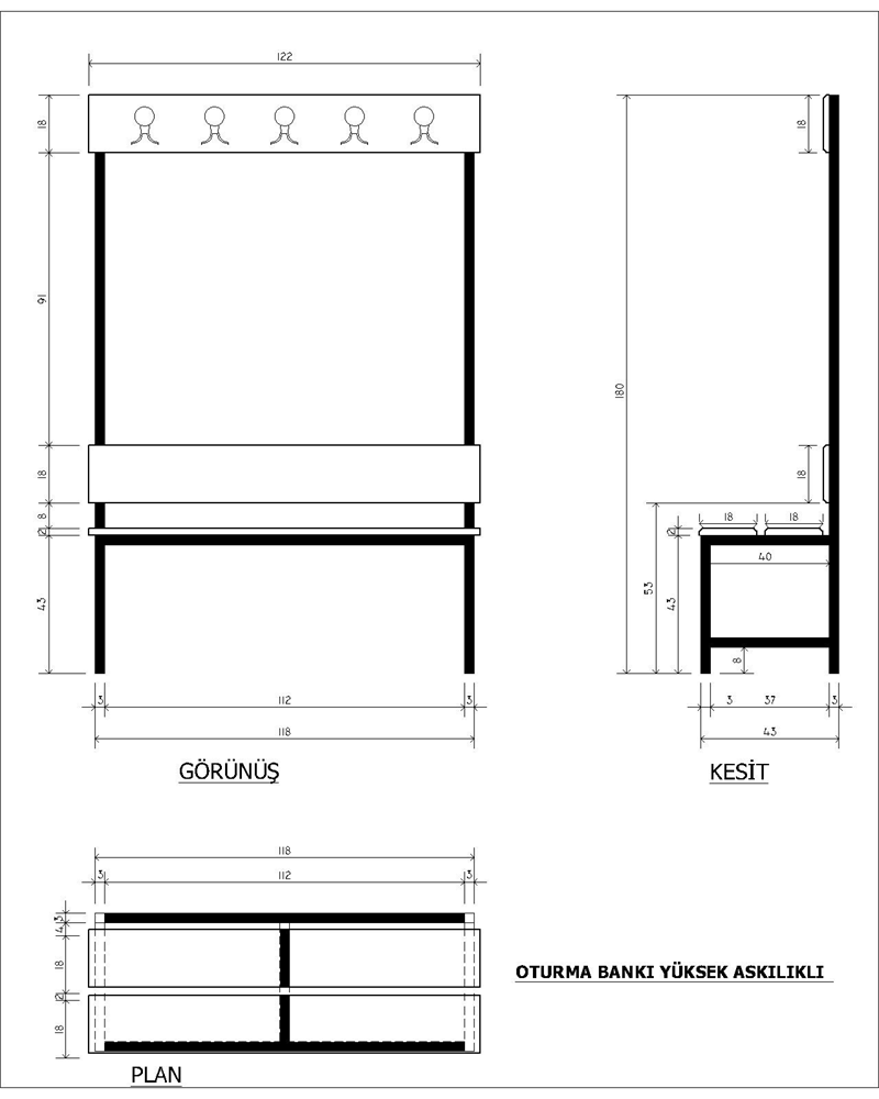 Oturma Bankı Compact Laminat Tablalı ve sırt bantlı 200cm